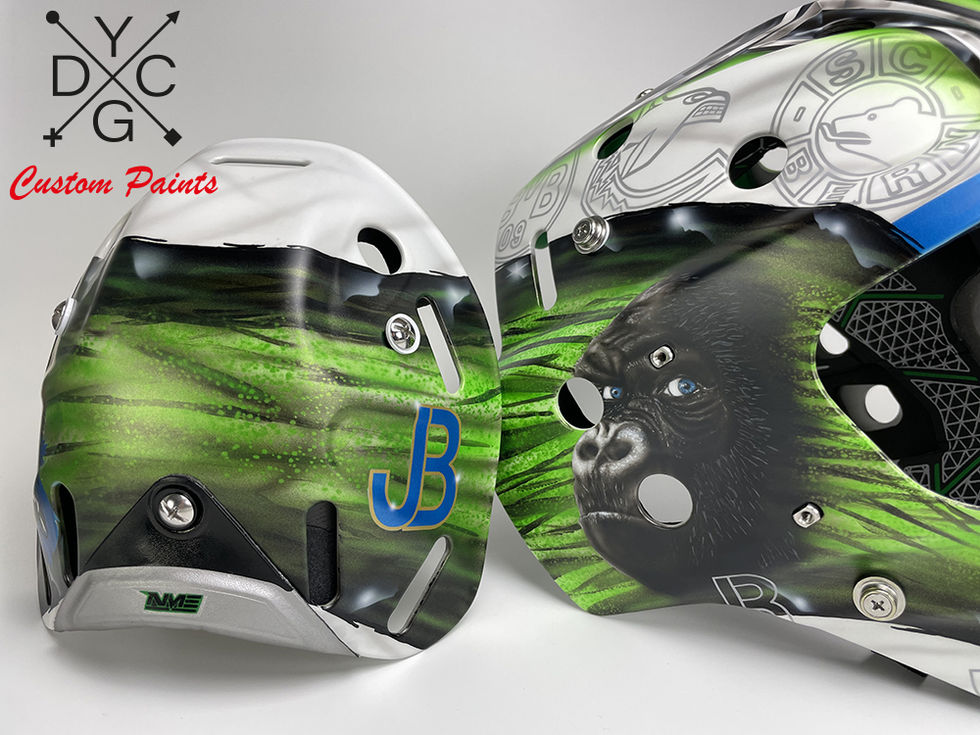 Masque de hockey personnalisé, effets 3D, effets chrome, effets brossés, peintures free hand, hyper réalisme, fini mate